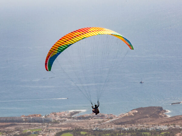 Before you lies the opportunity to fulfill this dream in one of the most beautiful places in the world, namely Tenerife, of course. Our flight begins in the town of Taucho in Adeje or Ifonche in the municipality of Arona, depending on where the conditions for takeoff are better. These locations are situated at an altitude of approximately 800-1000 meters above sea level. Paragliding is a wonderful attraction and an unforgettable experience that you will remember for a very long time. During the 20-minute flight, you will have plenty of time to enjoy this marvelous moment. You will simultaneously experience an adrenaline rush and a sense of complete relaxation. Paragliding is an excellent opportunity for rejuvenation and clearing your mind.