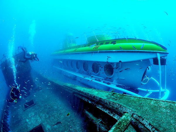 The submarine will move along the coast of this magnificent island at a depth of 30 meters. From the large air-conditioned cabin, you will see numerous saltwater species that live in the depths of the ocean. A professional diver will swim alongside us, luring the local fish with food, so you can see them up close.